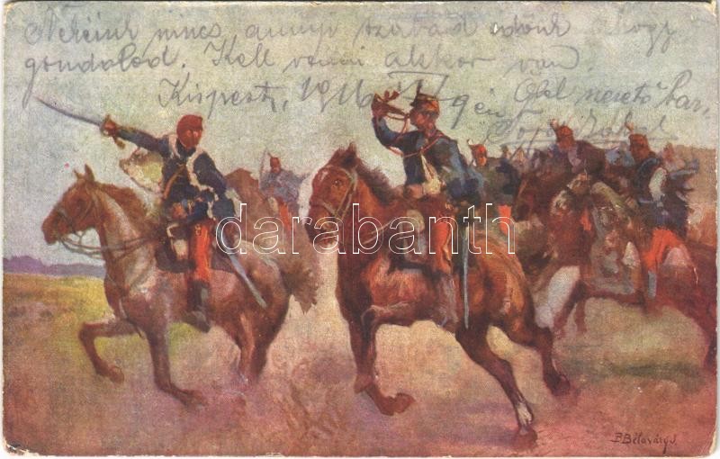 Rohamra! A M. kir. honvédelmi minisztérium hadsegélyező hivatala kiadása / WWI Austro-Hungarian K.u.K. military art postcard, charity fund s: Bélaváry (EK)