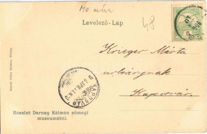 1906 Sümeg, Darnay Kálmán múzeuma, belső. Horvát Gábor kiadása https://www.darabanth.com/hu/403-Gyorsarveres/403.0/Kepeslapok/Magyarorszag~1000005/1906-Sumeg-Darnay-Kalman-muzeuma-belso-Horvat-Gabor-kiadasa~II2485322