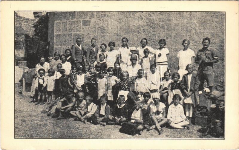 Leírás: Az Országos Magyar Gyermekvédő Egyesület gondozottjai a Salamon-toronynál Visegrádon (EK)