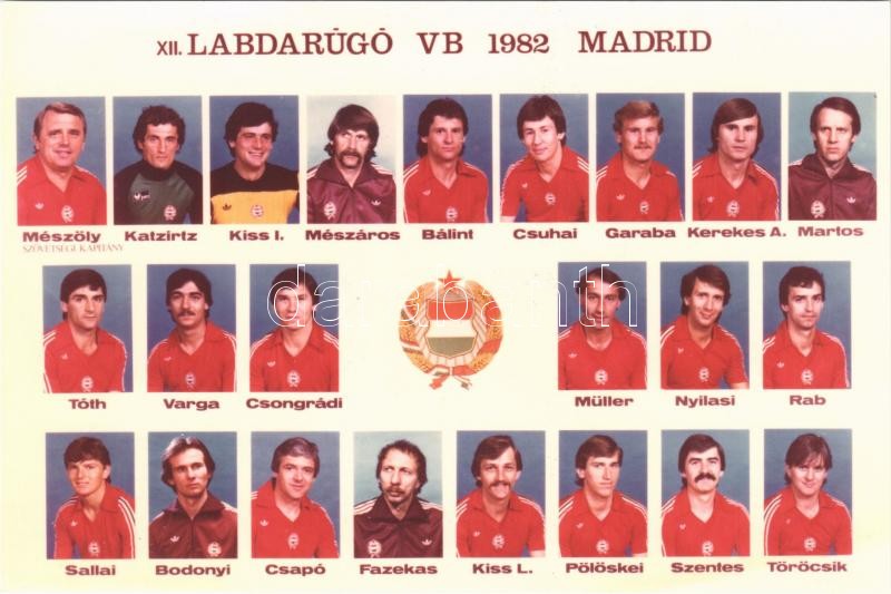 1982 Madrid, XII. Labdarúgó VB magyar válogatott csapata. Képzőművészeti Alap Kiadóvállalat / Hungary national football team of the 1982 FIFA World Cup in Madrid