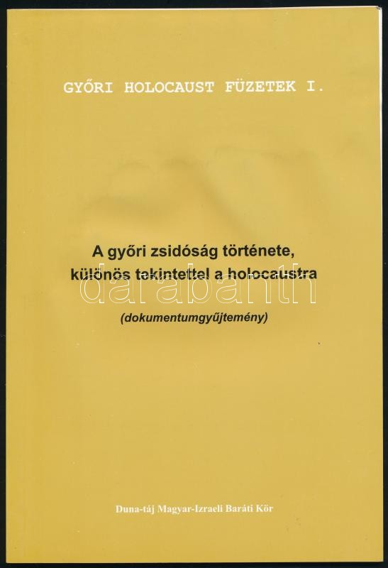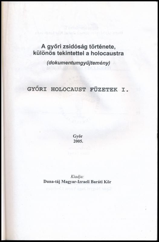 A győri zsidóság története, különös tekintettel a holocaustra. (dokumentumgyűjtemény.) Szerk.: Bana József. Győri Holocaust Fűzetek. I. Győr, 2005., Duna-táj Magyar Izraeli Baráti Kör. Kiadói papírkötés, hullámos lapokkal, foltos. Megjelent 500 példányban.