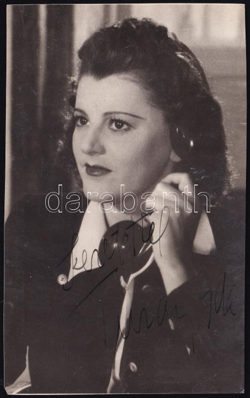 Leírás: Turay Ida (1907-1997) színésznő aláírása az őt ábrázoló képen
