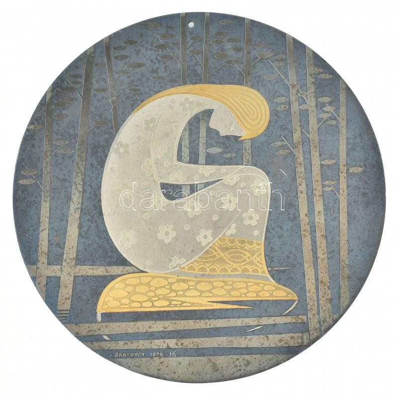 Leírás: Retró szovjet fali dísztányér, zománcozott fém, Zlatouszt 1974 jelzéssel, kissé kopottas, d: 18 cm