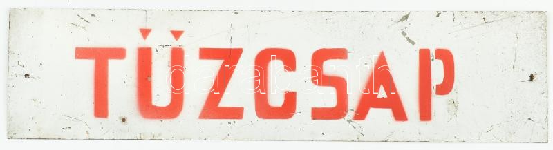 Leírás: "Tűzcsap" feliratos festett könnyűfém tábla, kopottas állapotban, 37,5x9,5 cm