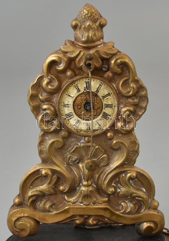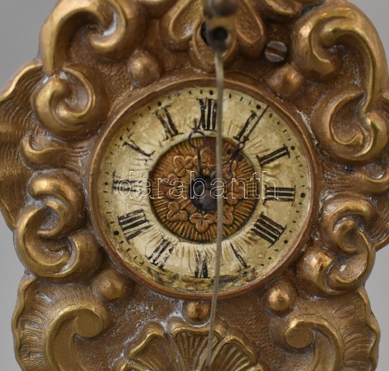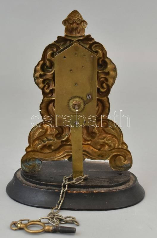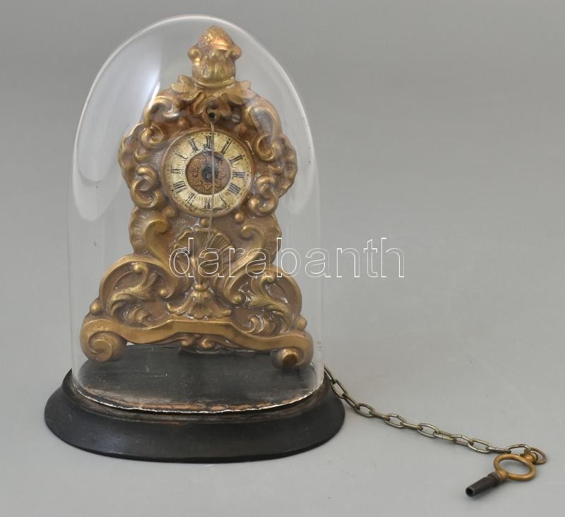 XIX. század. Zappler / Capler óra búra alatt, kézzel készült díszítéssel, felhúzókulcssal, nem működő szerkezettel, üveg búra alatt / zappler clock under glass. With winding key. Does not work. 19 cm