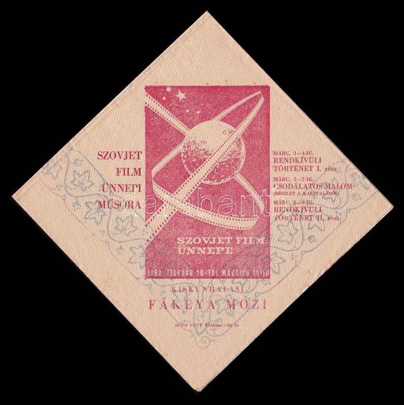 Leírás: Szovjet Film Ünnepi műsora Fáklya Mozi reklámszalvéta