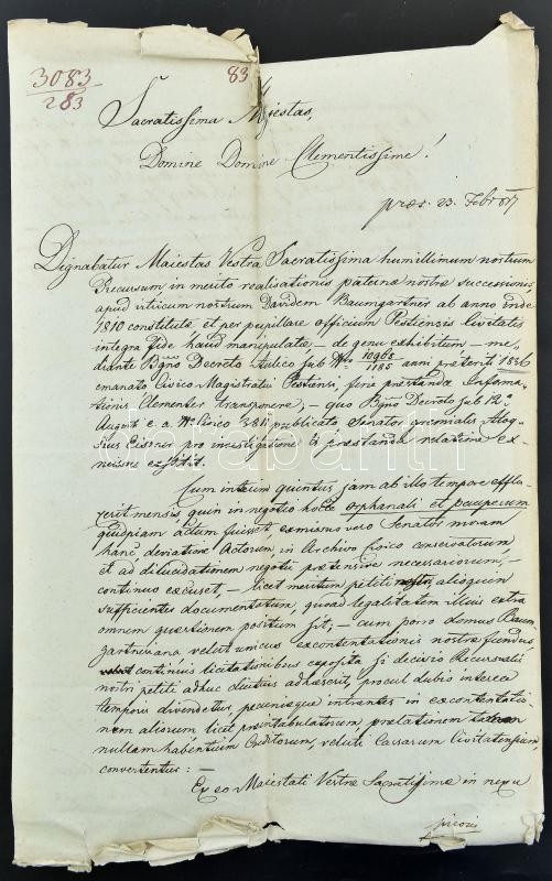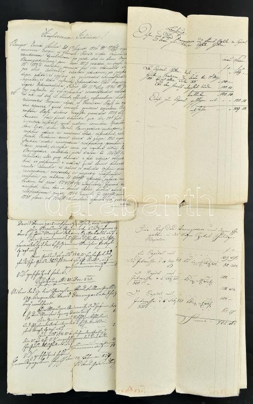 Leírás: cca 1830-1850 10 db bírósági irat, hivatalos levél, licitálási jegyzőkönyv
