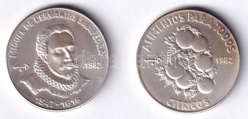 Cuba 1982. 5 Pesos Ag "Miguel de Cervantes" + 1982. 5 Pesos Ag "Citricos" C:UNC patina