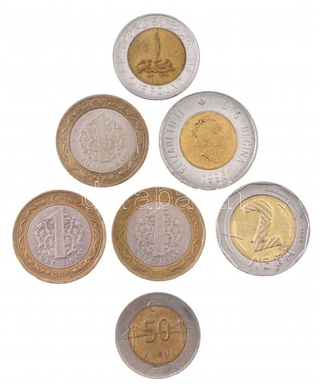 Vegyes: 7db-os egyiptomi, kanadai, bolgár és török bimetál érme tétel T:2