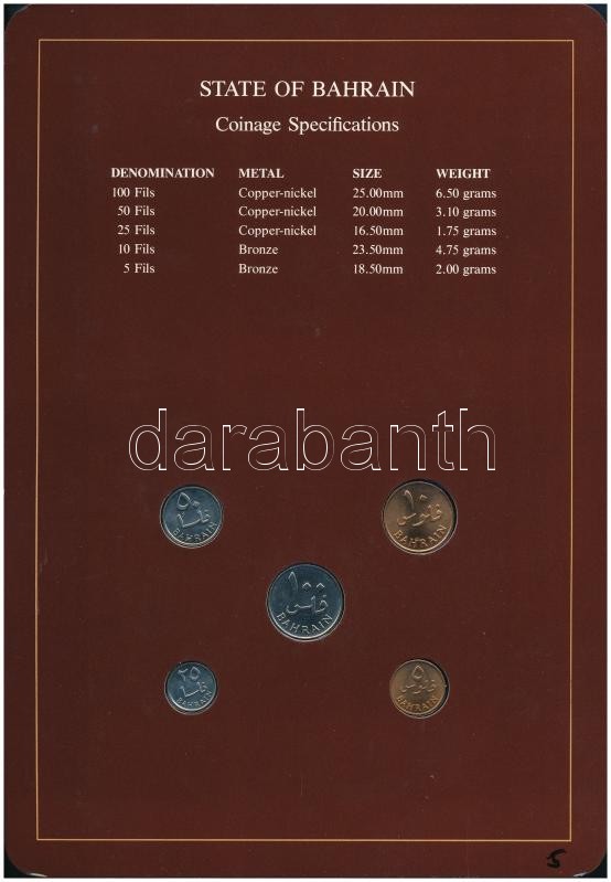 Bahrein 1965. 10f-100f (5xklf), "Coin Sets of All Nations" forgalmi szett felbélyegzett kartonlapon T:1,1-