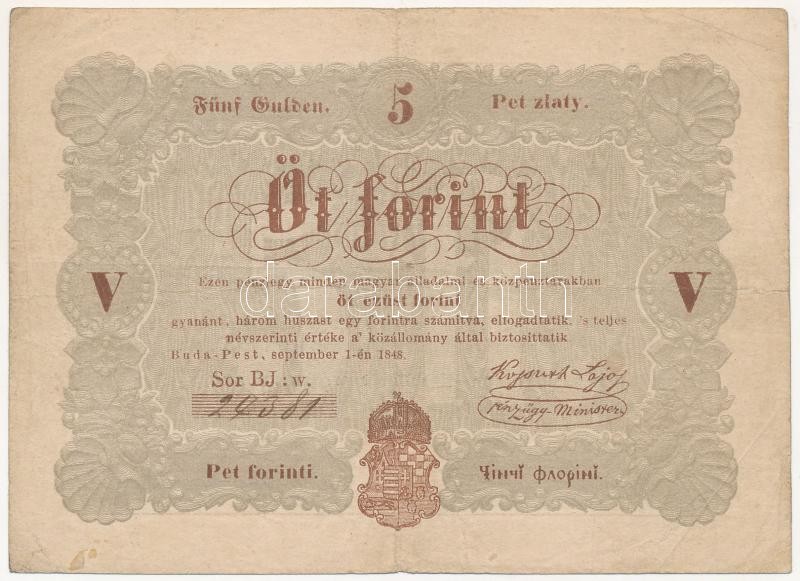1848. 5Ft "Kossuth bankó" barna nyomat "BJ 24381" ... https://www.darabanth.com/hu/403-Gyorsarveres/403.0/Numizmatika/Magyar-bankjegyek~2500007/1848-5Ft-Kossuth-banko-barna-nyomat-BJ-24381-TIII-Adamo-G109A~II2486004