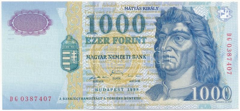 Leírás: 1998. 1000Ft "DG 0387407" T:III