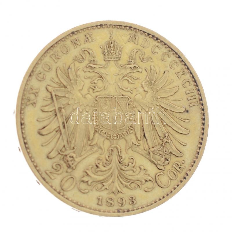 Ausztria 1893. 20K Au "Ferenc József" (6,79g/0.900) T:2 / Au... https://www.darabanth.com/hu/403-Gyorsarveres/403.0/Numizmatika/Magyar-es-kulfoldi-aranypenzek-es-emlekveretek~2500012/Ausztria-1893-20K-Au-Ferenc-Jozsef-6-79g0900-T2-Austria-1893-20-Corona-Au-Franz-Joseph-~II2466102