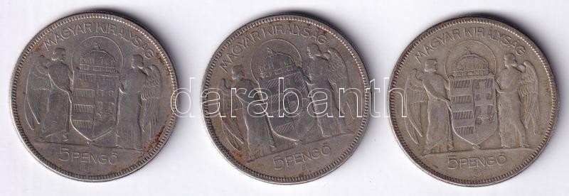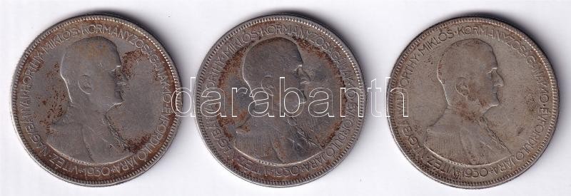 Leírás: 1930. 5P Ag "Horthy jobbra" (3x) T:3 patina Adamo P8