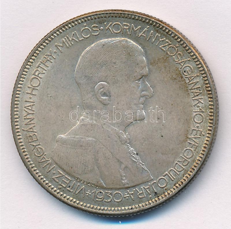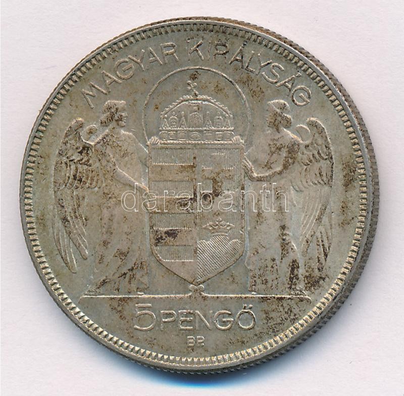 Leírás: 1930. 5P Ag "Horthy jobbra" T:1-,2 patina