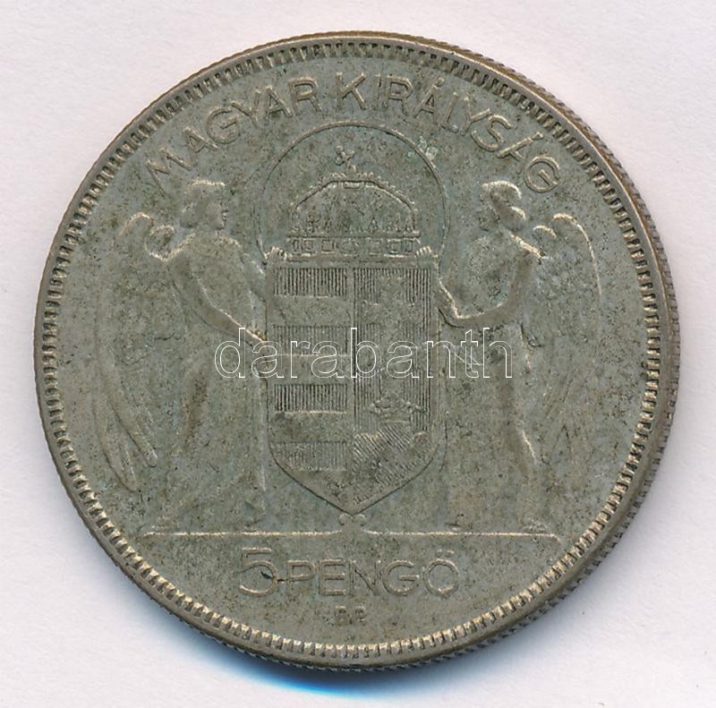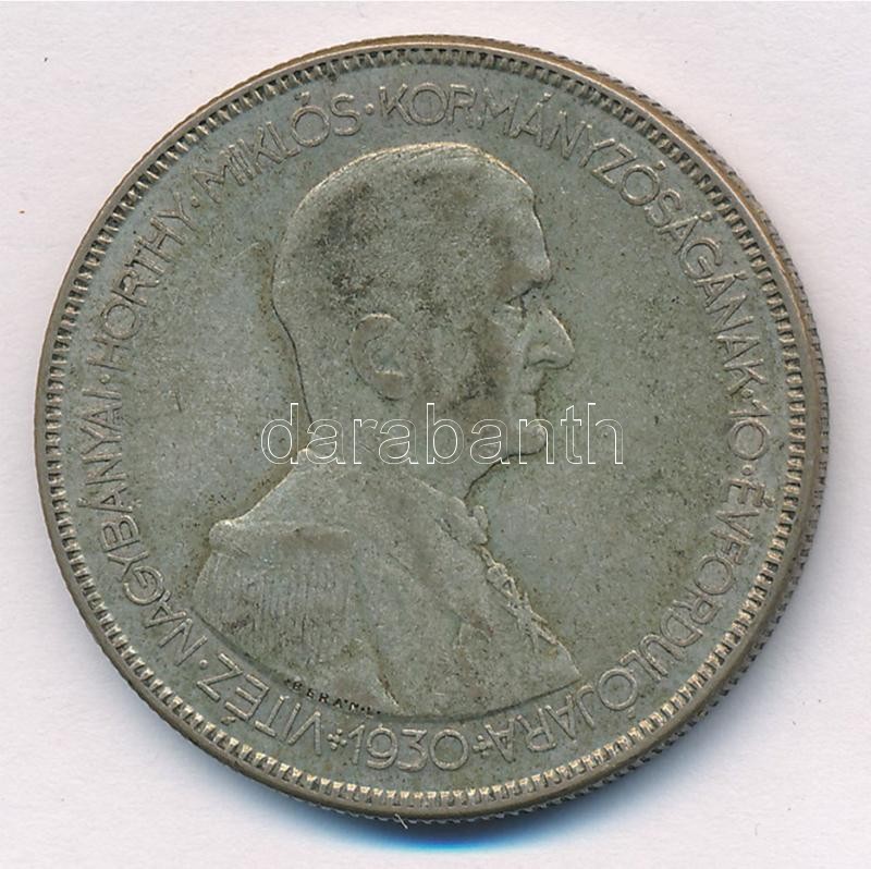 Leírás: 1930. 5P Ag "Horthy jobbra" T:3 patina