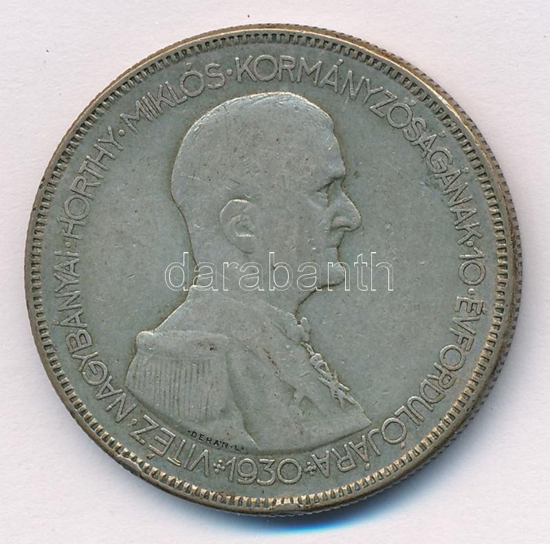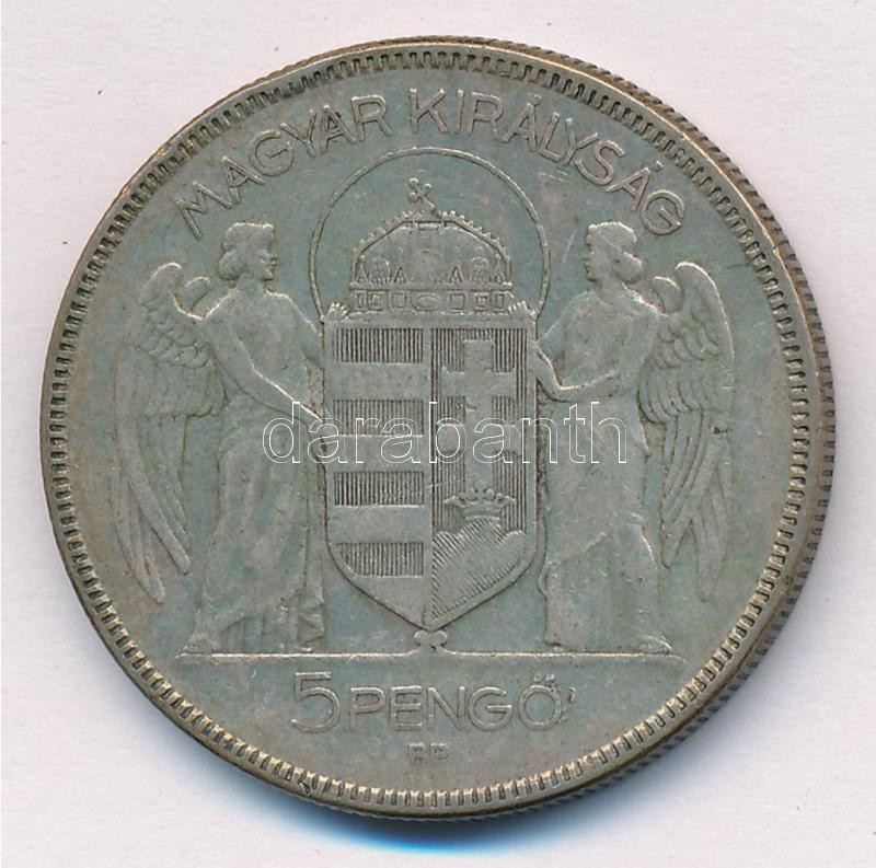 Leírás: 1930. 5P Ag "Horthy jobbra" T:3 patina