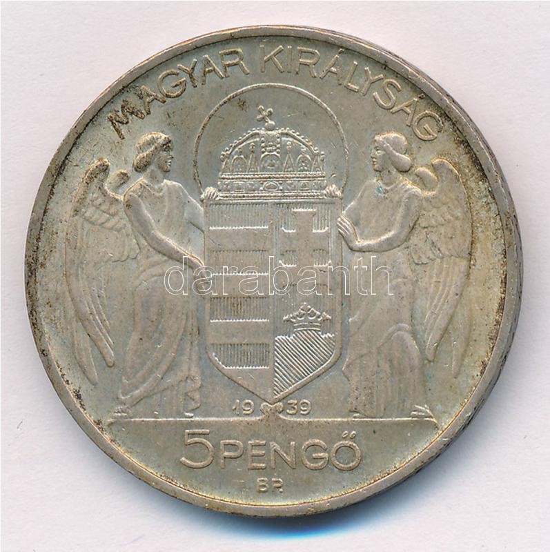 Leírás: 1939. 5P "Horthy balra" Ag T:1-,2 patina