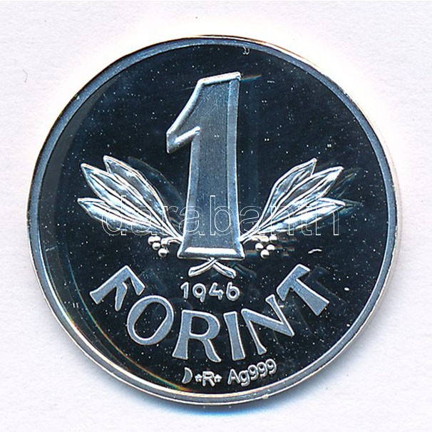 Leírás: 1946. 1Ft Ag utánveret "R" jelzéssel kapszulában és tanúsítvánnyal (4,04g/0.999) T:PP