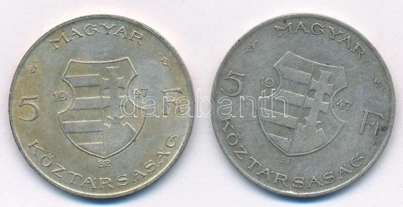 Leírás: 1947. 5Ft Ag "Kossuth" (2x) T:2-,3 patina Adamo F8.1
