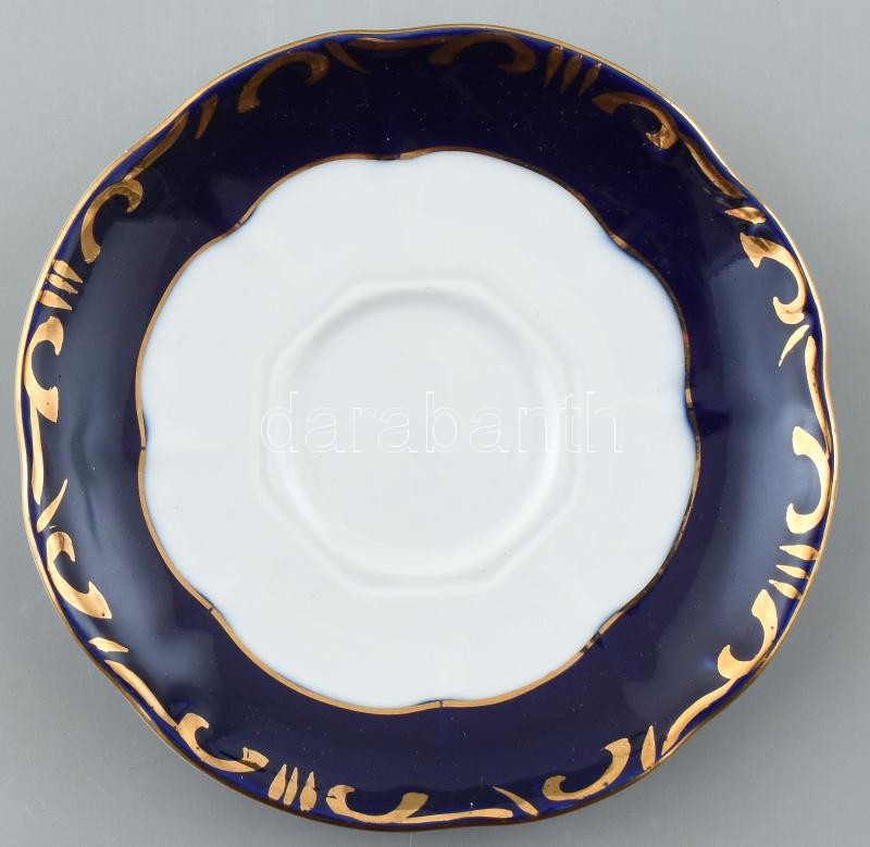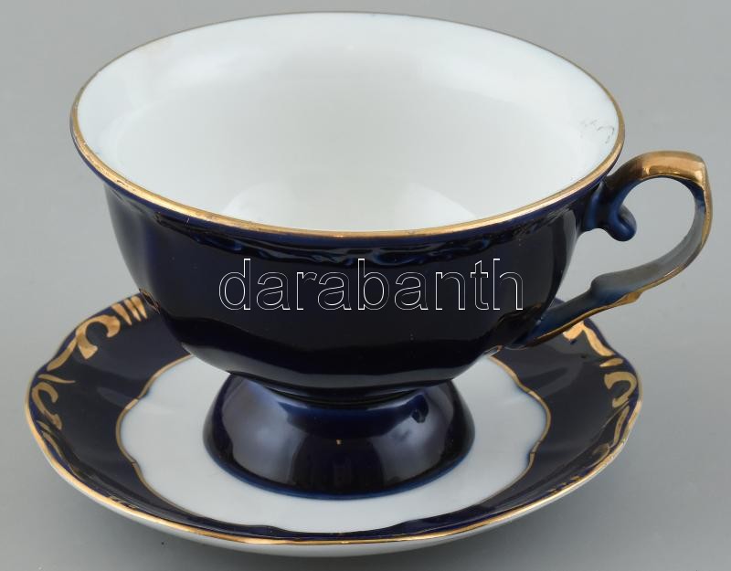 Zsolnay Pompadour mintás csészealj, kézzel festett, jelzett, "GUNDEL" pecséttel, apró kopásnyomokkal, d: 12 cm + Pompadour jellegű porcelán csésze, jelzés nélkül, kopásnyomokkal, d: 10 cm