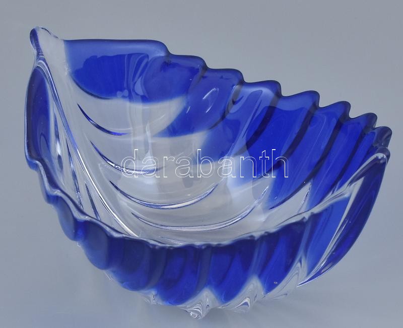 Leírás: Kristály kék levélalakú tálka, kopott, 18x11cm