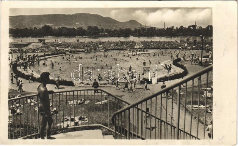 Leírás: Budapest XIII. Dagály utcai Szabadság gyógyfürdő, strand, fürdőzők. Képzőművészeti Alap Kiadóvállalat (EK)