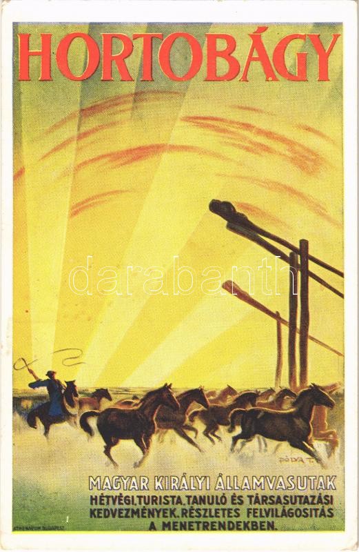 Leírás: Hortobágy. A Magyar Királyi Államvasutak turisztikai reklám képeslapja / Hungarian State Railways tourism campaign advertisement s: Pólya T. (EK)