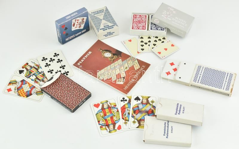 Patience kártyák 10 csomag, benne bontatlan is + egy német nyelvű kárt... https://www.darabanth.com/hu/404-Gyorsarveres/404.0/Mutargy-papirregiseg-egyeb/Jatekok~500015/Patience-kartyak-10-csomag-benne-bontatlan-is-plus-egy-nemet-nyelvu-kartyajatek-leiras-1971~II2493574