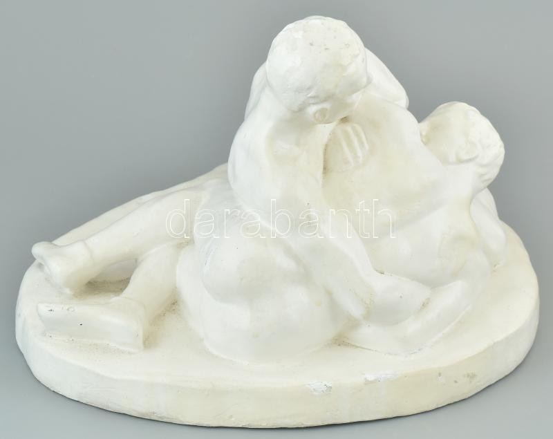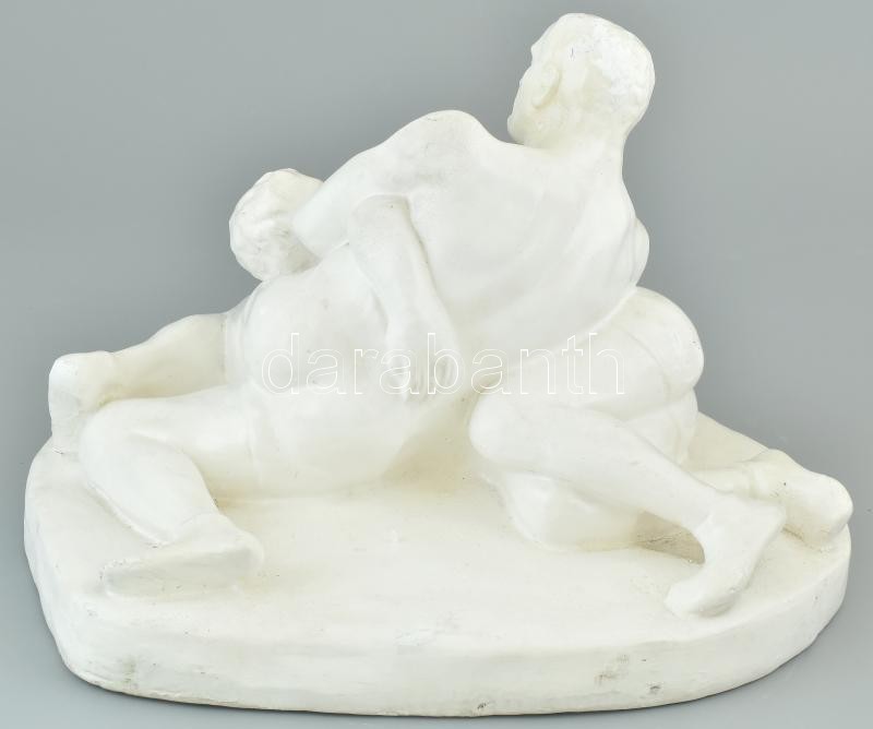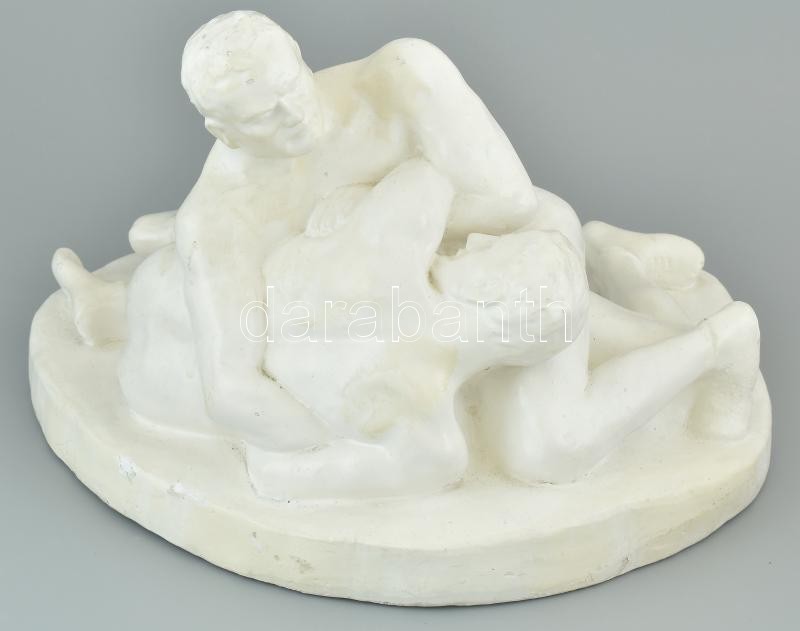 Leírás: Ismeretlen művész, jelzés nélkül: Birkózók. Gipsz. Sérült. 36x32x23 cm