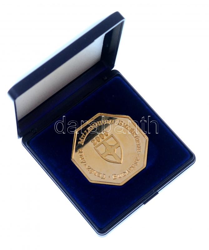 Leírás: 2000. "Terézváros Millenniumi Emlékérme - Budapest" aranyozott, nyolcszögletű, kétoldalas emlékérem, eredeti tokban (39mm) T:1