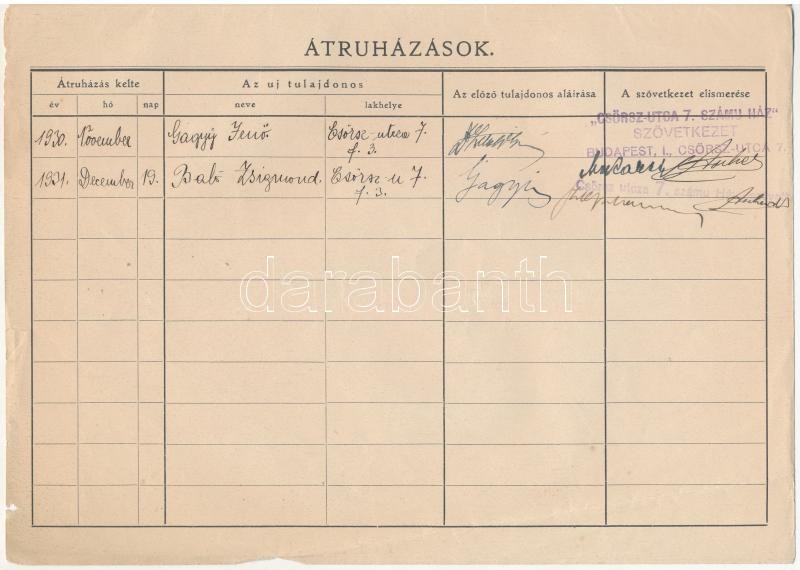 Budapest 1929. "A 'Csörsz-utca 7. számú ház' Szövetkezet" névre szóló ... https://www.darabanth.com/hu/404-Gyorsarveres/404.0/Numizmatika/Reszvenyek-es-sorsjegyek~2500005/Budapest-1929-A-Csorsz-utca-7-szamu-haz-Szovetkezet-nevre-szolo-reszjegye-1000P-rol-~II2495840