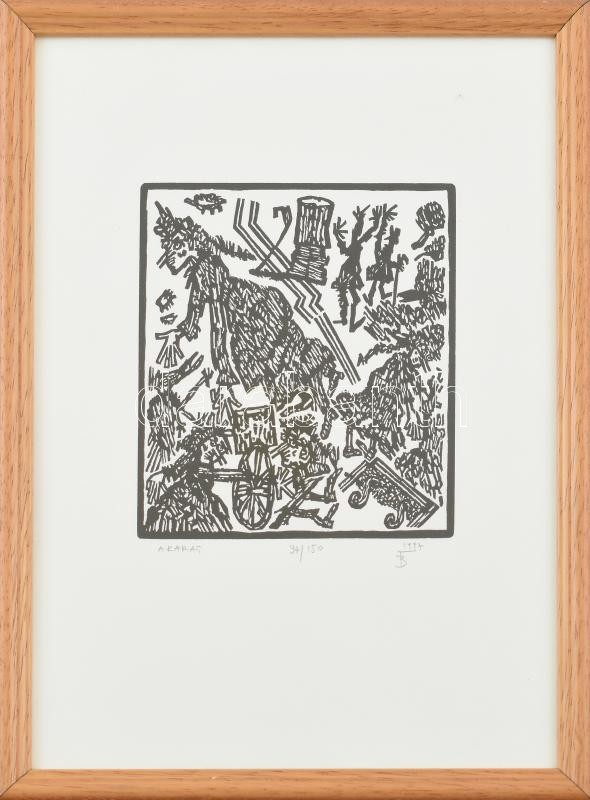 Banga Ferenc (1947- ): Akarat, 1997. Linómetszet, papír, jelzett, szám... https://www.darabanth.com/hu/405-Gyorsarveres/405.0/Festmenyek-es-grafikak/Festmenyek-es-grafikak~1/Banga-Ferenc-1947-Akarat-1997-Linometszet-papir-jelzett-szamozott-97150-uvegezett-~II2503678