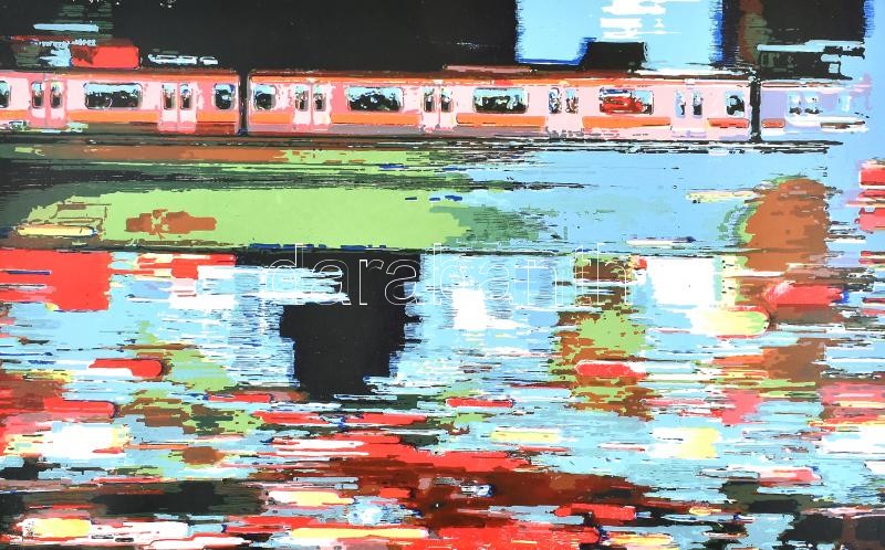 Leírás: György Tamás (?-): Színes-pompás. Szitanyomat, papír, jelzett, számozott (1/8), 32×50,5 cm