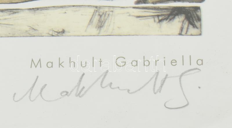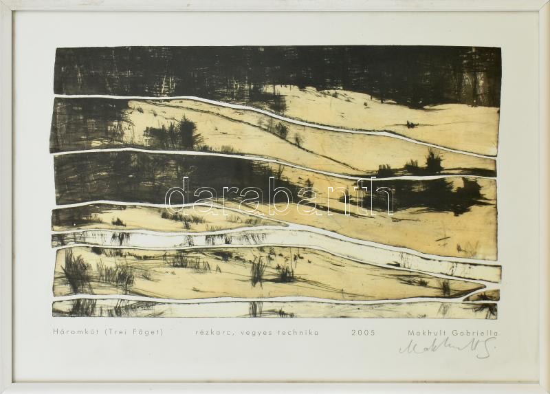 Makhult Gabriella (1981-): Háromkút. Rézkarc után készült ofszetnyomat, papír. Jelzett. Számozott a hátoldalán: 260/325. 21,5x33,5 cm. Üvegezett keretben.