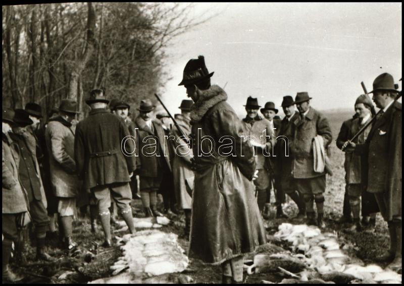 Leírás: 1927 Mezőhegyes, a vadászat utáni terítéket mustrálja Horthy Miklós, 1 db NEGATÍV, 5x6,5 cm