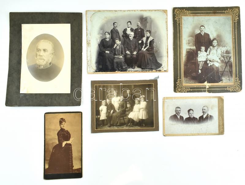cca 1890-1910 Fényképek a bonyhádi Perczel család hagyatékából, 6 db keményhátú és kartonra kasírozott fotó, közte sérültek, 21x13 cm és 29,5x24 cm közötti méretben