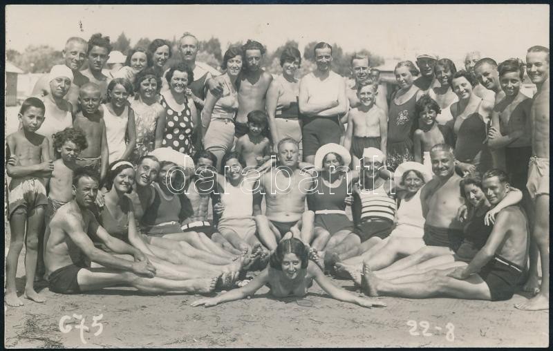 cca 1920-1930 Strandolók csoportképe, fotólap, 9×14 cm https://www.darabanth.com/hu/405-Gyorsarveres/405.0/Fotomuveszet/Foto~21/cca-1920-1930-Strandolok-csoportkepe-fotolap-9C39714-cm~II2500545