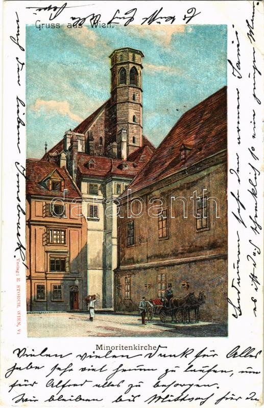 1900 Wien, Vienna, Bécs I. Minoritenkirche / church. E. Storch (EK) https://www.darabanth.com/hu/405-Gyorsarveres/405.0/Kepeslapok/Ausztria~1000018/1900-Wien-Vienna-Becs-I-Minoritenkirche-church-E-Storch-EK~II2500744