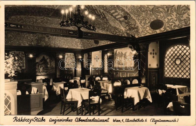 1940 Wien, Vienna, Bécs I. Rákóczy Stube ungarisches Abendrestaurant. ... https://www.darabanth.com/hu/405-Gyorsarveres/405.0/Kepeslapok/Ausztria~1000018/1940-Wien-Vienna-Becs-I-Rakoczy-Stube-ungarisches-Abendrestaurant-Elisabethstr-6-Magyar-C3~II2500746