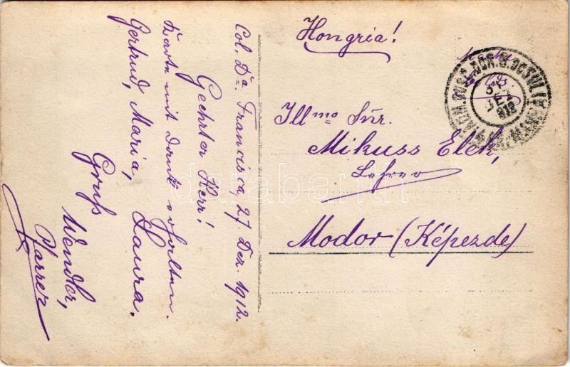 Leírás: 1912 Dona Francisca, men with guns. photo, TCV card (EK)