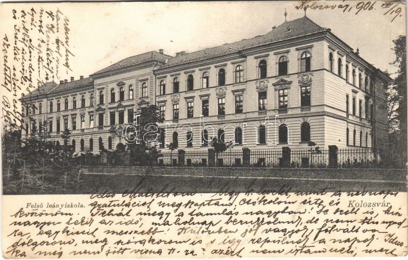 1906 Kolozsvár, Cluj; Felső leányiskola / girl school (EK) https://www.darabanth.com/hu/405-Gyorsarveres/405.0/Kepeslapok/Erdely~1000002/1906-Kolozsvar-Cluj-Felso-leanyiskola-girl-school-EK~II2339972