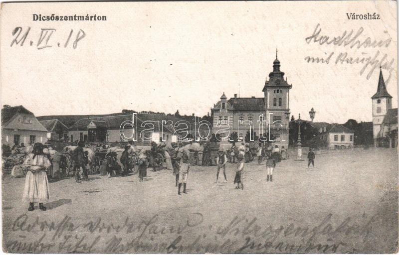 1918 Dicsőszentmárton, Tarnaveni, Diciosanmartin; városház, tér, piac ... https://www.darabanth.com/hu/405-Gyorsarveres/405.0/Kepeslapok/Erdely~1000002/1918-Dicsoszentmarton-Tarnaveni-Diciosanmartin-varoshaz-ter-piac-szekerekkel-Frohlich-ki~II2369180