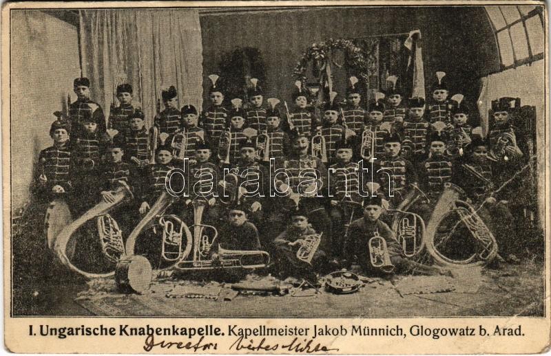 Glogovác, Öthalom, Vladimirescu, Glogowatz b. Arad; I. Ungarische Knabenkapelle, Kapellmeister Jakob Münnich / Első magyar fiú zenekar / First Hungarian boy music band (EB)