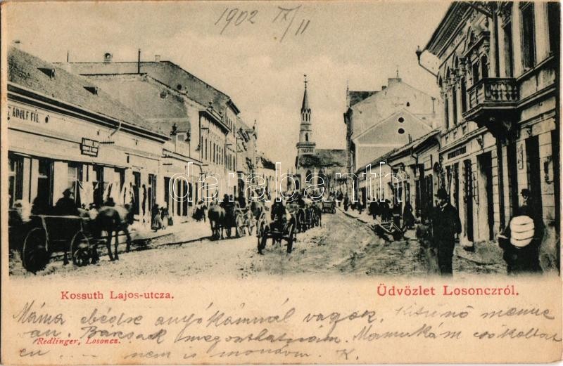 1902 Losonc, Lucenec; Kossuth Lajos utca, templom, üzletek / street vi... https://www.darabanth.com/hu/405-Gyorsarveres/405.0/Kepeslapok/Felvidek~1000003/1902-Losonc-Lucenec-Kossuth-Lajos-utca-templom-uzletek-street-view-church-shops~II1945447