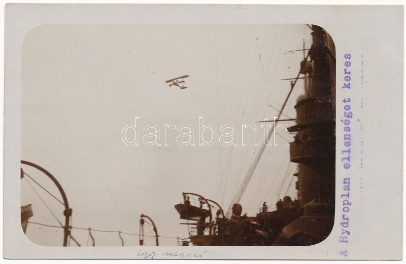 Az Osztrák-Magyar Haditengerészet Donnet-Léveque hidroplánja a levegőben ellenséget keres / K.u.K. Kriegsmarine Wasserflugzeugm Überflug Donnet-Léveque 10 (?) / WWI Austro-Hungarian Navy seaplane, naval aircraft, hydroplane in the air looking for enemy. photo