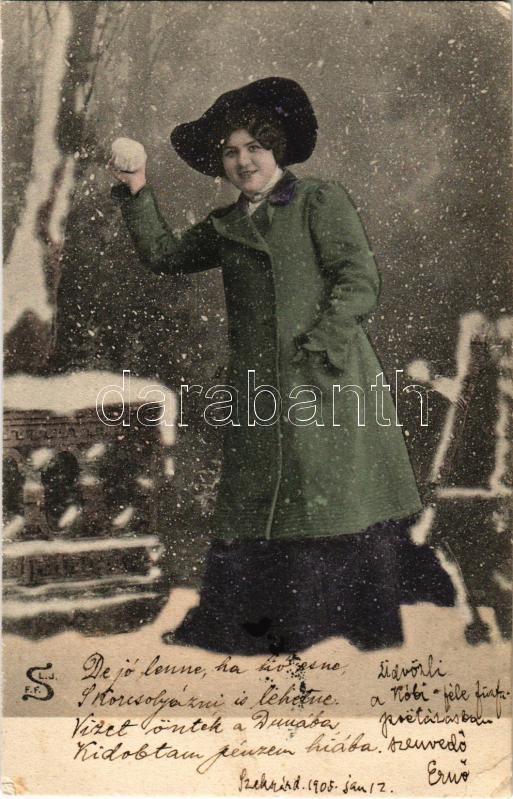 1905 Lady throwing a snowball, winter. Serie "Im Schnee" (EK... https://www.darabanth.com/hu/405-Gyorsarveres/405.0/Kepeslapok/Holgyek~1000074/1905-Lady-throwing-a-snowball-winter-Serie-Im-Schnee-EK~II2162912
