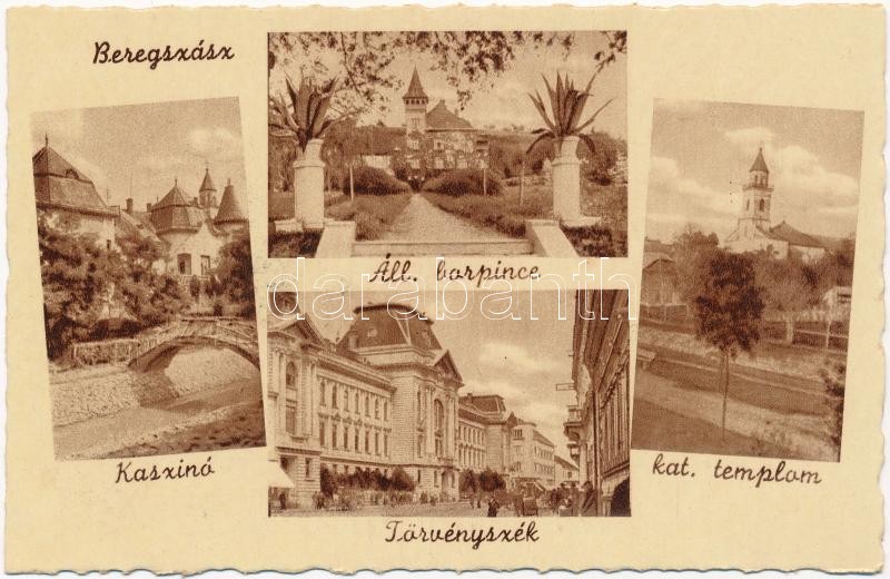 Leírás: Beregszász, Berehove; Kaszinó, Állami borpince, törvényszék, katolikus templom / casino, wine cellar, court of justice, church (ázott / wet damage)