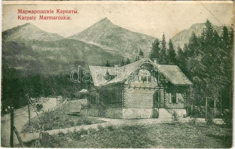 Máramarosi-havasok, Karpaty Marmaroskie, Muntii Maramuresului; menház ... https://www.darabanth.com/hu/405-Gyorsarveres/405.0/Kepeslapok/Karpatalja~1000014/Maramarosi-havasok-Karpaty-Marmaroskie-Muntii-Maramuresului-menhaz-wooden-rest-house~II2502645
