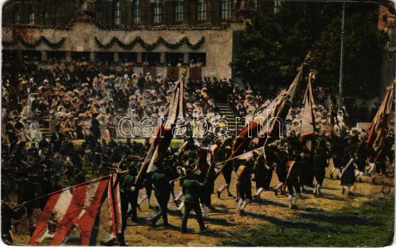 Kaiser-Jubil.-Huldigungsfestzug, Wien 1908. Gruppe Tirol. Schützen-Vereine / 60th Anniversary of Franz Joseph's reign, K.u.K. military parade, Tyrolean rifle group (r)